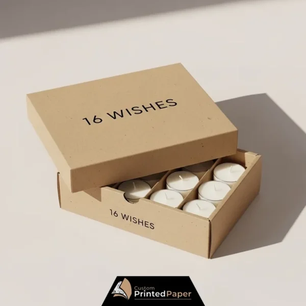 | Box Size | Custom (based on candle size; typical: 10″ x 8″ x 2″ or similar) |