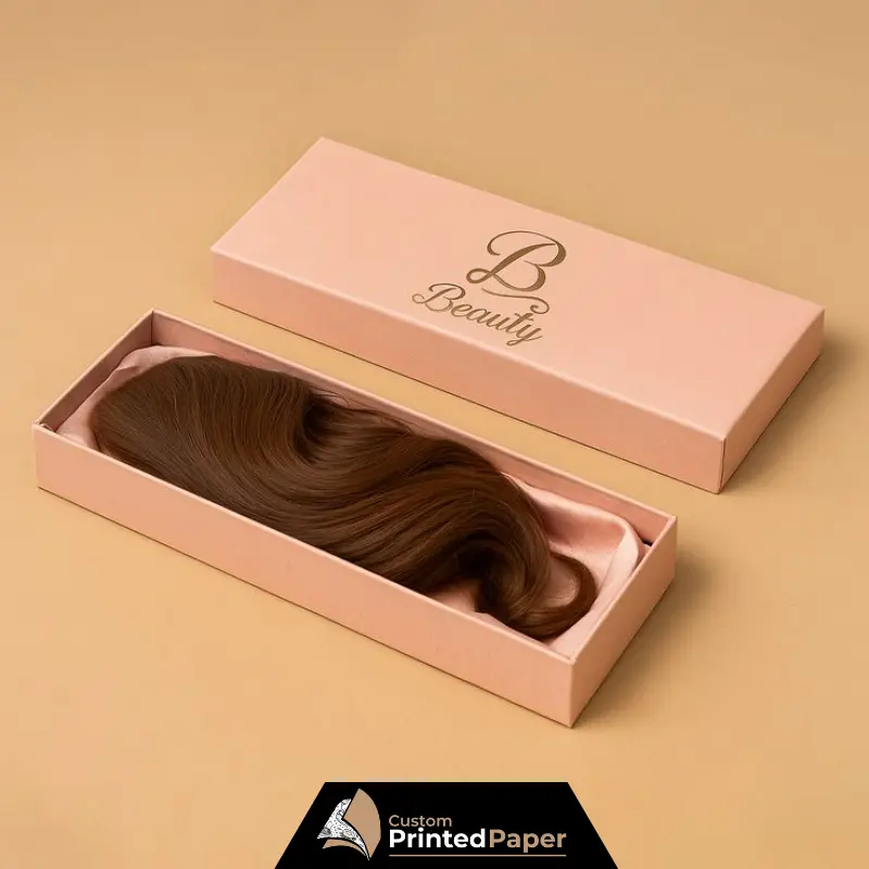 High-definition printing processes like offset, flexographic, or digital are used. This will be done to provide necessary graphics, shade indicators, and instructions on the box. Colors are selected for printed hair extension boxes with logo with great keenness according to brand identity and consumer preference. Clarity is brought out by sharp printing, and both text and imagery are effectively portrayed.