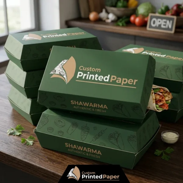 Present your shawarma wraps elegantly with Custom Shawarma Boxes by customprintedpaper. With our food box your wraps will be fresh, warm and giving you a great eating experience. These boxes are made from food-grade, grease-resistant paper-best for takeaway and delivery. Available in different sizes, shapes, and high-quality printing, these custom food packaging solutions will flaunt your logo with ease and invite more clients. The perfect way to provide excellent food packaging services for restaurant, food truck, and fast-food businesses.